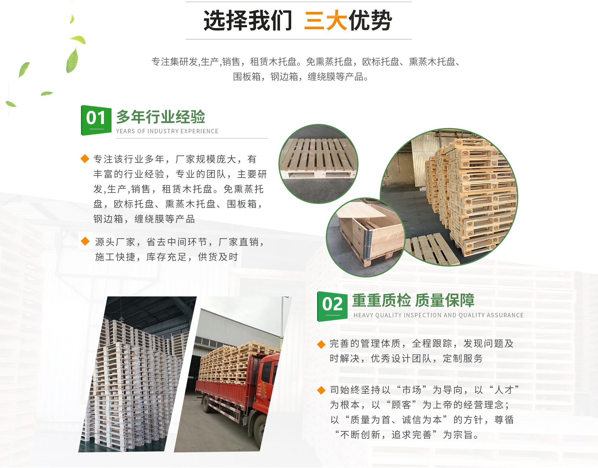 蕪湖奔騰包裝股份有限公司坐落于滬渝高速灣沚出口處3公里,距離灣沚高鐵站6公里,蕪宣客運(yùn)機(jī)場(chǎng)5公里,交通十分便利。我公司是專(zhuān)注集木托盤(pán)研發(fā),生產(chǎn),銷(xiāo)售,租賃的綜合服務(wù)商。本公司生產(chǎn)的免熏蒸托盤(pán),歐標(biāo)托盤(pán)、熏蒸木托盤(pán)、圍板箱,鋼邊箱等產(chǎn)品遠(yuǎn)銷(xiāo)海內(nèi)外。公司本著“以質(zhì)量求生存,以信譽(yù)謀發(fā)展,以服務(wù)拓出路”的服務(wù)經(jīng)營(yíng)理念;重視產(chǎn)品質(zhì)量和服務(wù),為用戶(hù)著想。根據(jù)客戶(hù)需求,及時(shí)送貨。公司始終堅(jiān)持以“市場(chǎng)”為導(dǎo)向,以“人才”為根本,以“顧客”為上帝的經(jīng)營(yíng)理念;以“質(zhì)量為首、誠(chéng)信為本”的方針,尊循“不斷創(chuàng)新,追求完善”為宗旨。本著生產(chǎn)廠家,減少中間流通環(huán)節(jié)的原則,讓利于每位客戶(hù)朋友。我們的產(chǎn)品價(jià)格合理,質(zhì)量過(guò)硬,真誠(chéng)歡迎各方客商前來(lái)業(yè)務(wù)洽談與合作。